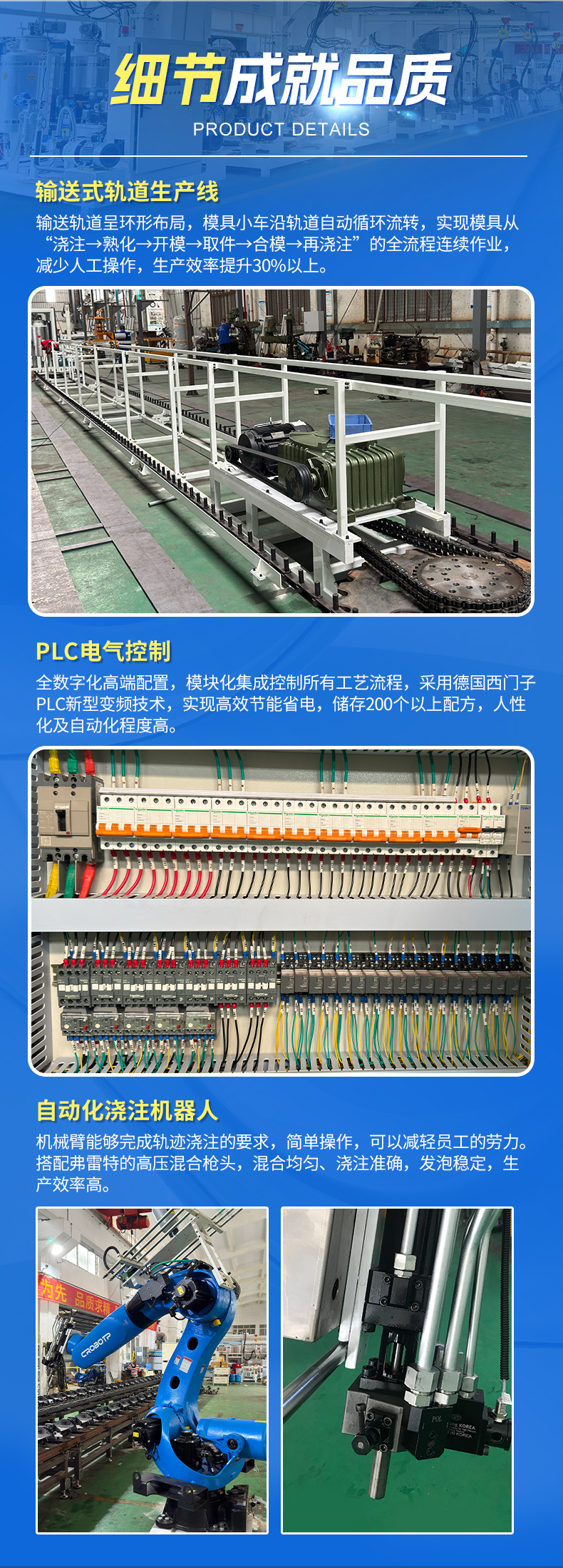 環(huán)形輸送線:變頻自動(dòng)控制,運(yùn)行平穩(wěn),輸送速度可調(diào),匹配不同發(fā)泡工藝節(jié)拍。