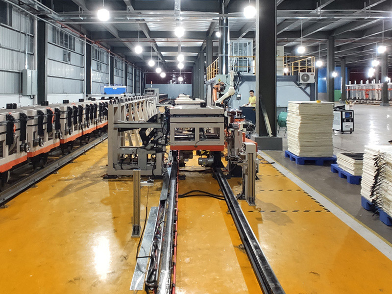 用于生產地暖發熱瓷磚、裝飾保溫板、冷庫板、背景墻裝飾板等,實現保溫板的生產自動化,機器人的應用實現發泡無人化。