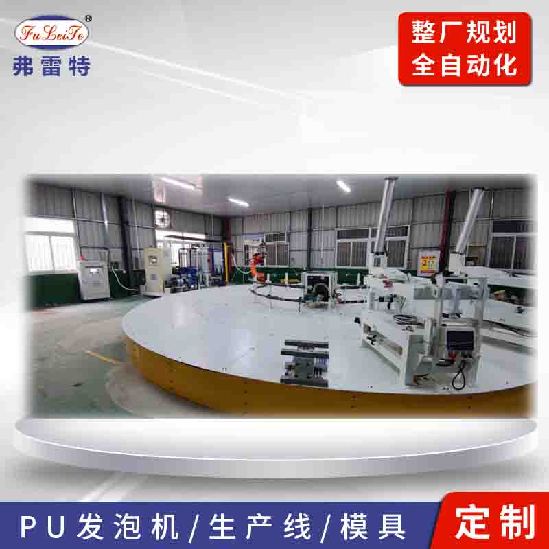 弗雷特自主研發大型自動化轉盤生產線能實現連續型、多工位、全自動化發泡生產,主要應用于汽車座椅坐墊聚氨酯發泡、摩托車坐墊PU自結皮發泡、健身器材發泡、腳墊發泡等。