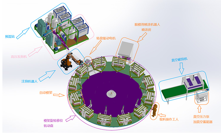 熱門關鍵詞:聚氨酯發泡機 | 發泡模具模架 | 發泡生產線 | 原料儲存預混 | 機器人自動化 | 主要配件