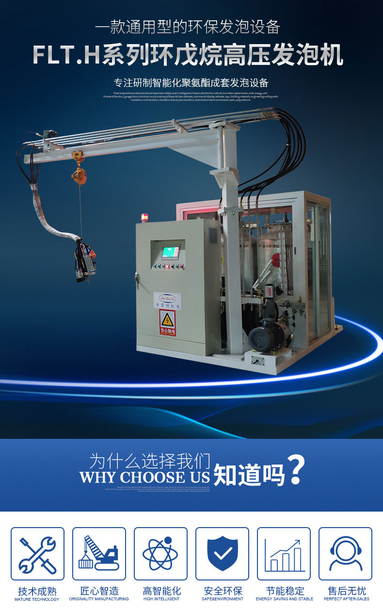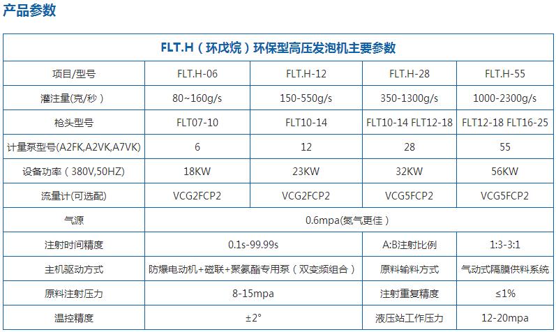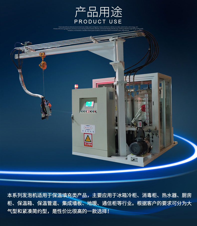 該系列發泡機型有FLT.H-06/12/28/55,環戊烷作為硬質聚氨酯泡沫的新型發泡劑,用于替代對大氣臭氧層有破壞作用的氯氟烴(CFCS),現已廣泛應用于生產無氟冰箱、冰柜行業以及冷庫、管線保溫等領域。無氟發泡及環戊烷安全檢測,警報及處理系統令環戊烷發泡機的使用變得更加安全和可靠,隨著蒙特利兒等公約規定的禁用ODS期限的臨近,CFCr和HCFCs類產品不久將被禁用,環戊烷將成為聚氨酯發泡劑領域的主角。因此,環戊烷發泡機用途相當廣泛,滿足市場需求,順應環保趨勢。