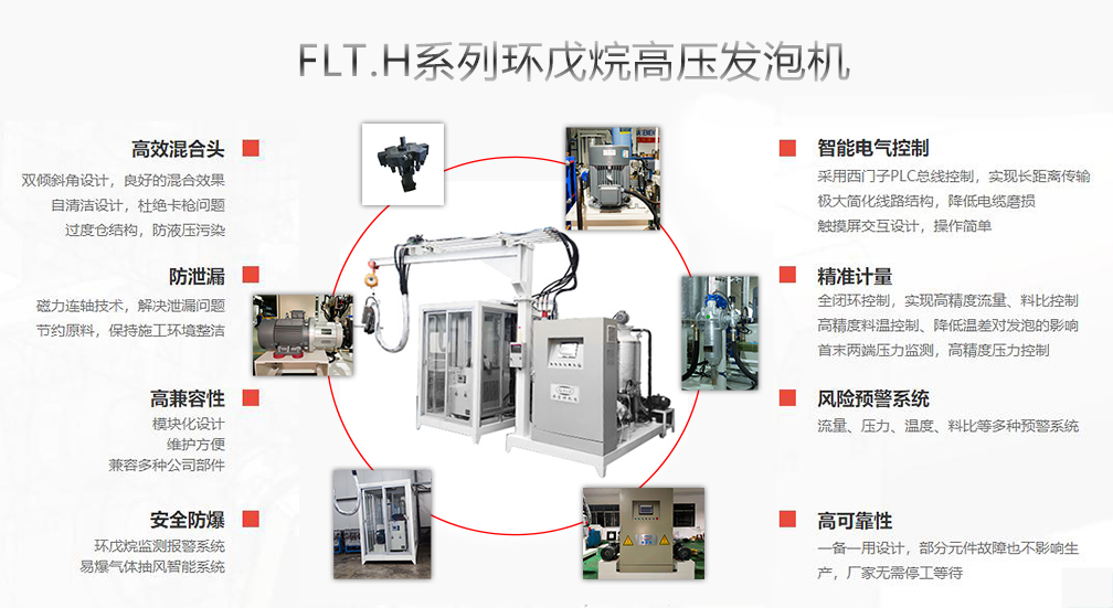該系列發泡機型有FLT.H-06/12/28/55,環戊烷作為硬質聚氨酯泡沫的新型發泡劑,用于替代對大氣臭氧層有破壞作用的氯氟烴(CFCS),現已廣泛應用于生產無氟冰箱、冰柜行業以及冷庫、管線保溫等領域。無氟發泡及環戊烷安全檢測,警報及處理系統令環戊烷發泡機的使用變得更加安全和可靠,隨著蒙特利兒等公約規定的禁用ODS期限的臨近,CFCr和HCFCs類產品不久將被禁用,環戊烷將成為聚氨酯發泡劑領域的主角。因此,環戊烷發泡機用途相當廣泛,滿足市場需求,順應環保趨勢。
