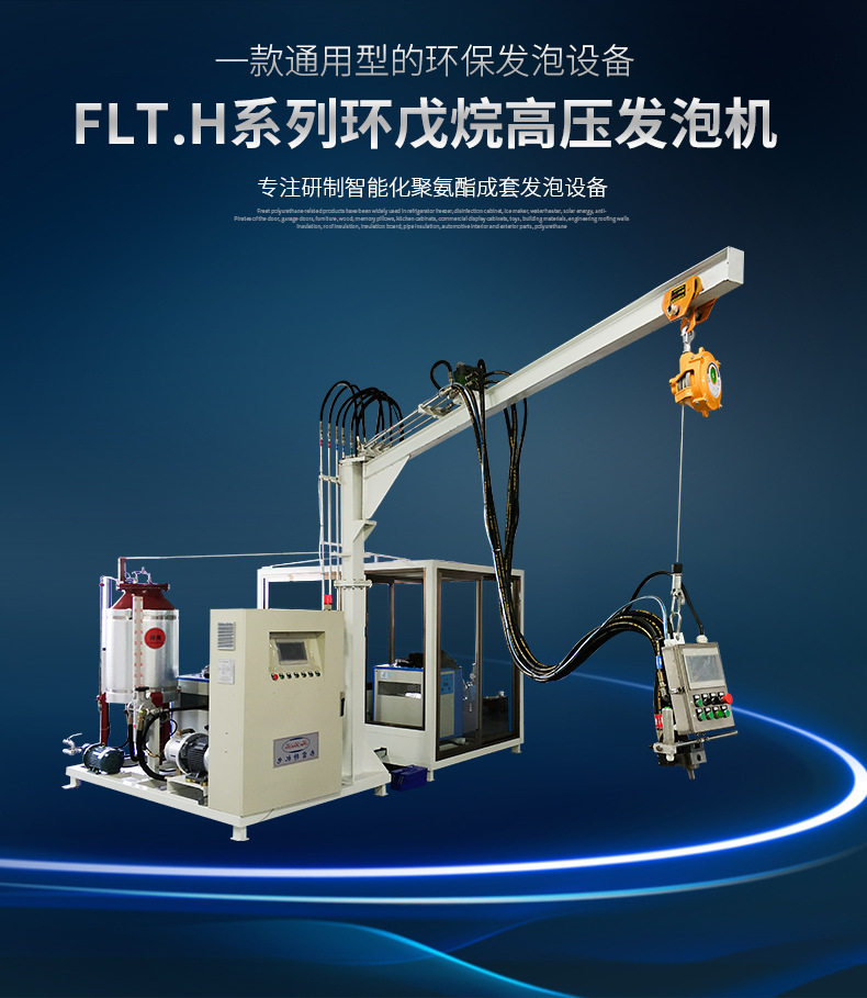 該系列發(fā)泡機型有FLT.H-06/12/28/55,環(huán)戊烷作為硬質(zhì)聚氨酯泡沫的新型發(fā)泡劑,用于替代對大氣臭氧層有破壞作用的氯氟烴(CFCS),現(xiàn)已廣泛應(yīng)用于生產(chǎn)無氟冰箱、冰柜行業(yè)以及冷庫、管線保溫等領(lǐng)域。無氟發(fā)泡及環(huán)戊烷安全檢測,警報及處理系統(tǒng)令環(huán)戊烷發(fā)泡機的使用變得更加安全和可靠,隨著蒙特利兒等公約規(guī)定的禁用ODS期限的臨近,CFCr和HCFCs類產(chǎn)品不久將被禁用,環(huán)戊烷將成為聚氨酯發(fā)泡劑領(lǐng)域的主角。因此,環(huán)戊烷發(fā)泡機用途相當廣泛,滿足市場需求,順應(yīng)環(huán)保趨勢。