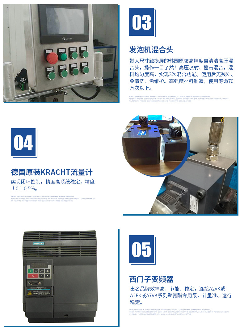具有西門子PLC+雙變頻多功能安全裝置,38個智能自檢保護點,獨立防靜電房,烷氣濃度等級自動識別系統(tǒng),自動2-3級抽風(fēng)系統(tǒng),西門子防爆電機,獨立導(dǎo)地裝置,槍頭引線靜電導(dǎo)出裝置等,外接2組獨立對比恒溫,12~100種噴灌定時定量控制,開槍溫度鎖定,故障自檢報警等,本系統(tǒng)采用自清潔/止逆/防濺粘/新型V型發(fā)泡槍(實現(xiàn)3次混合功能),結(jié)構(gòu)美觀、操作方便。根據(jù)客戶實際情況,還可以一機雙槍使用,雙槍自動切換,變頻節(jié)能、應(yīng)用自如,專為客戶量身訂做發(fā)泡完善系統(tǒng)。